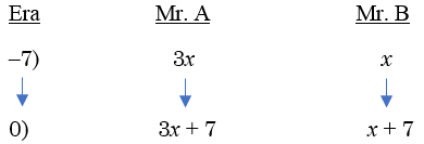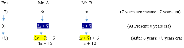 Step 2: Then find age of other person accordingly (e.g. 7 years ago, age of A three times that of B, so 7 years ago, age of A became 3x).